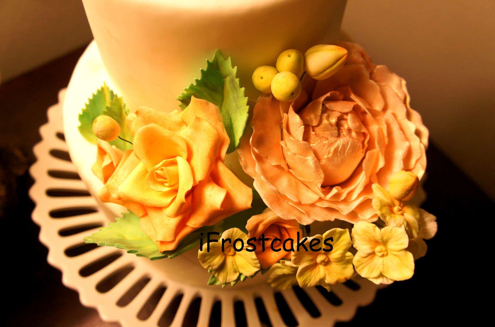 The close up view all sugar flowers... roses, peony and hydrangea